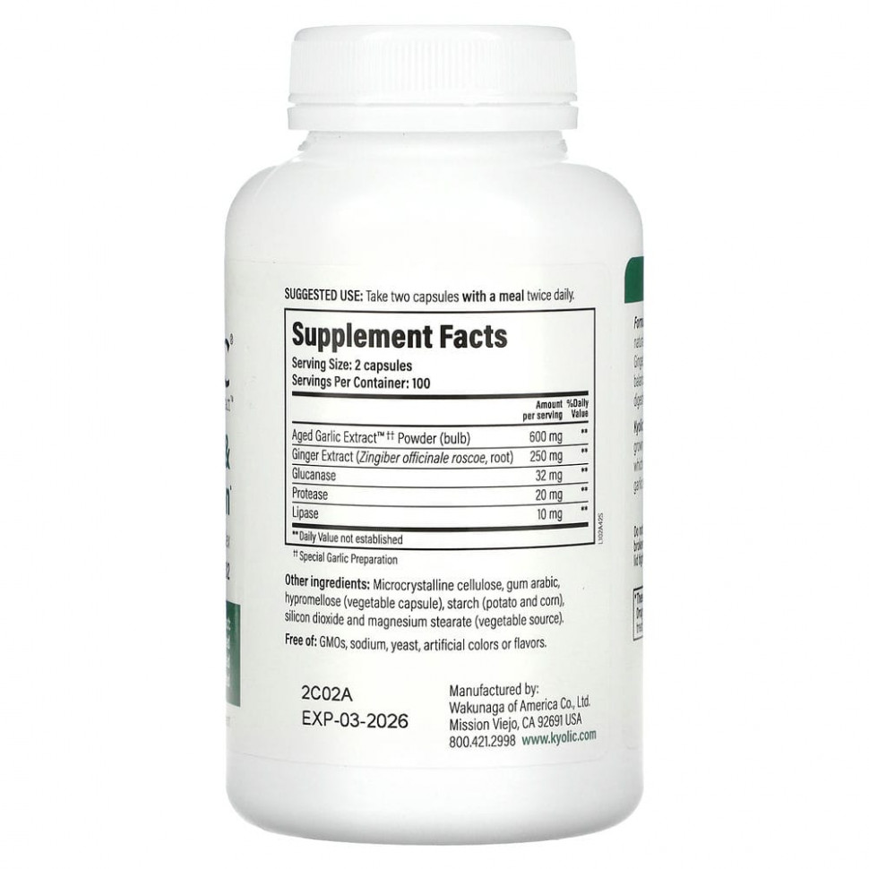 Смесь трав и ферментов Kyolic формулы 102 содержит уникальную, естественную и синергетическую комбинацию из выдержанного экстракта чеснока, имбиря, глюканазы, липазы и протеазы для очищения изнутри, здоровой работы кишечника и пищеварительного баланса.