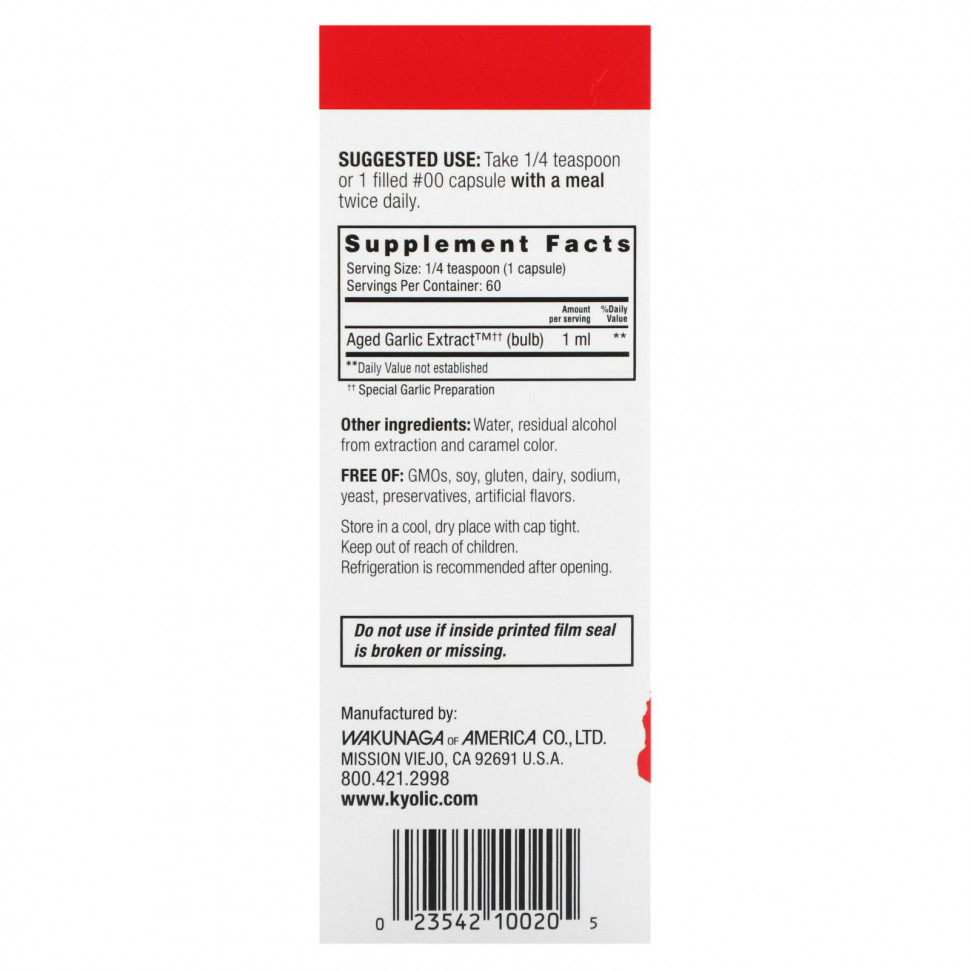 Жидкий экстракт выдержанного чеснока ™ состоит из 100% органического чеснока из Калифорнии. Использование уникальной технологии извлечения экстракта чеснока позволяет получить продукт, обогащенный полезными соединениями, но без характерного запаха. Такой способ применяется только в Kyolic.