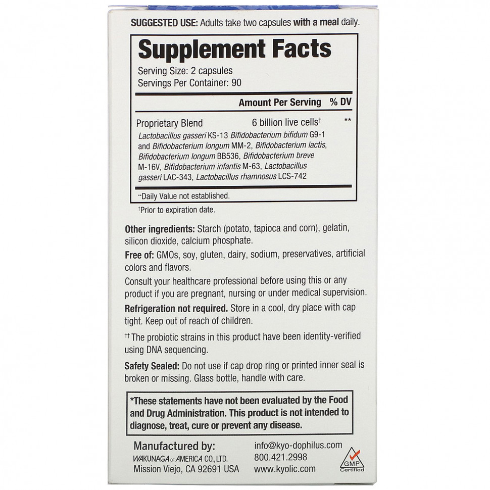 Пробиотик Kyo-Dophilus® Multi 9 содержит комплекс из девяти разных полезных бактерий, включая The Friendly Trio®, L. gasseri KS-13, B. bifidum G9-1 и B. longum MM-2, а также B. infantis, B. breve и L. rhamnosus и другие совместимые виды. Эта комбинация из нескольких штаммов может помочь заселить ваш микробиом полезными бактериями, чтобы укрепить здоровье желудочно-кишечного тракта и помочь вам поддерживать сбалансированную пищеварительную и иммунную систему.