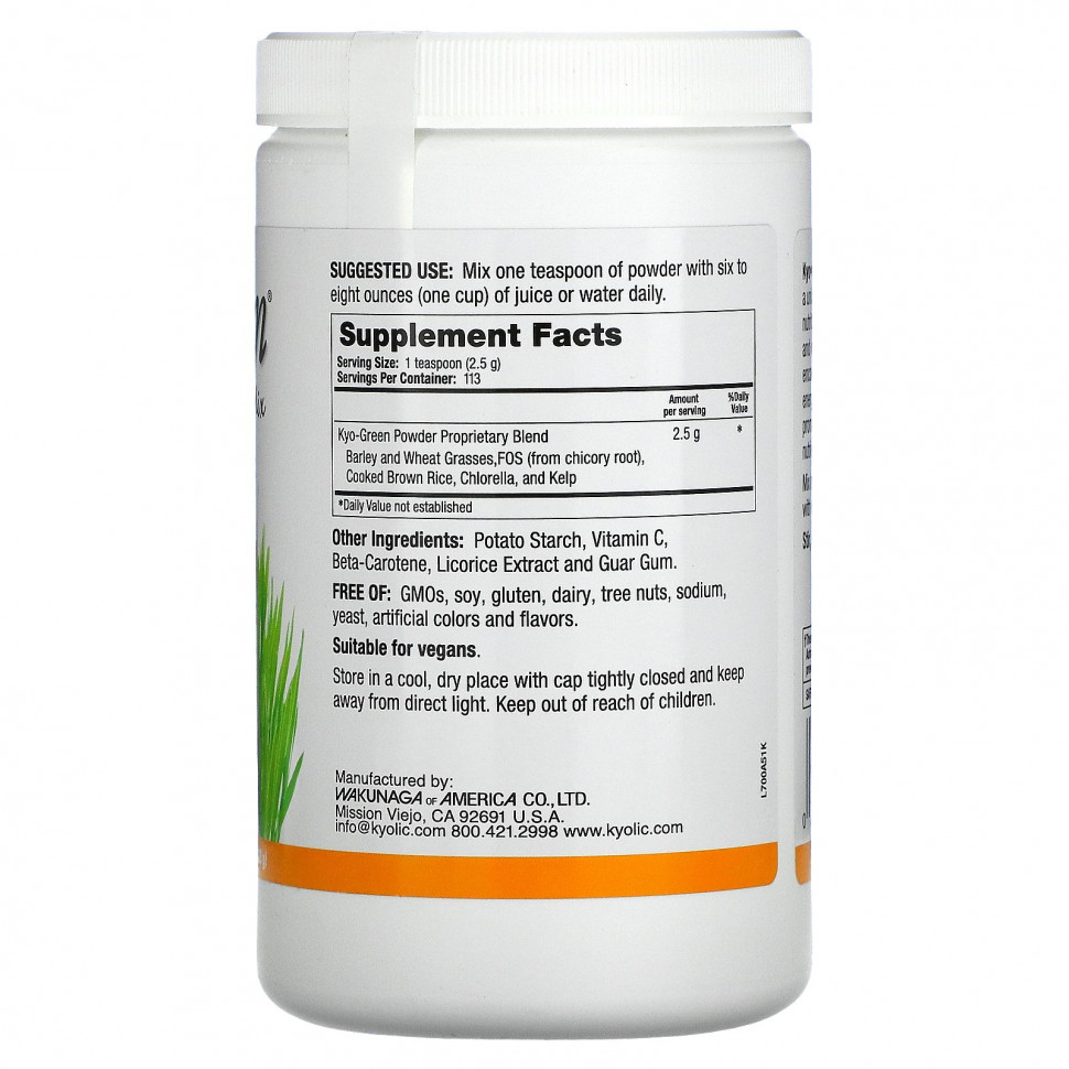 Порошковая смесь для напитков Kyo•Green® содержит уникальное сочетание суперпродуктов, обеспечивающее сбалансированную питательную ценность для всего организма. Ячмень и пшеница, выращиваемые в высокогорных районах Японии с девственной природой, способствуют развитию сильного иммунного ответа и поддерживают уровень энергии. Коричневый рис и фруктоолигосахариды (из корня цикория) способствуют здоровому пищеварению. Уникальный состав питательных веществ хлореллы и бурых водорослей поддерживает здоровье сердца.