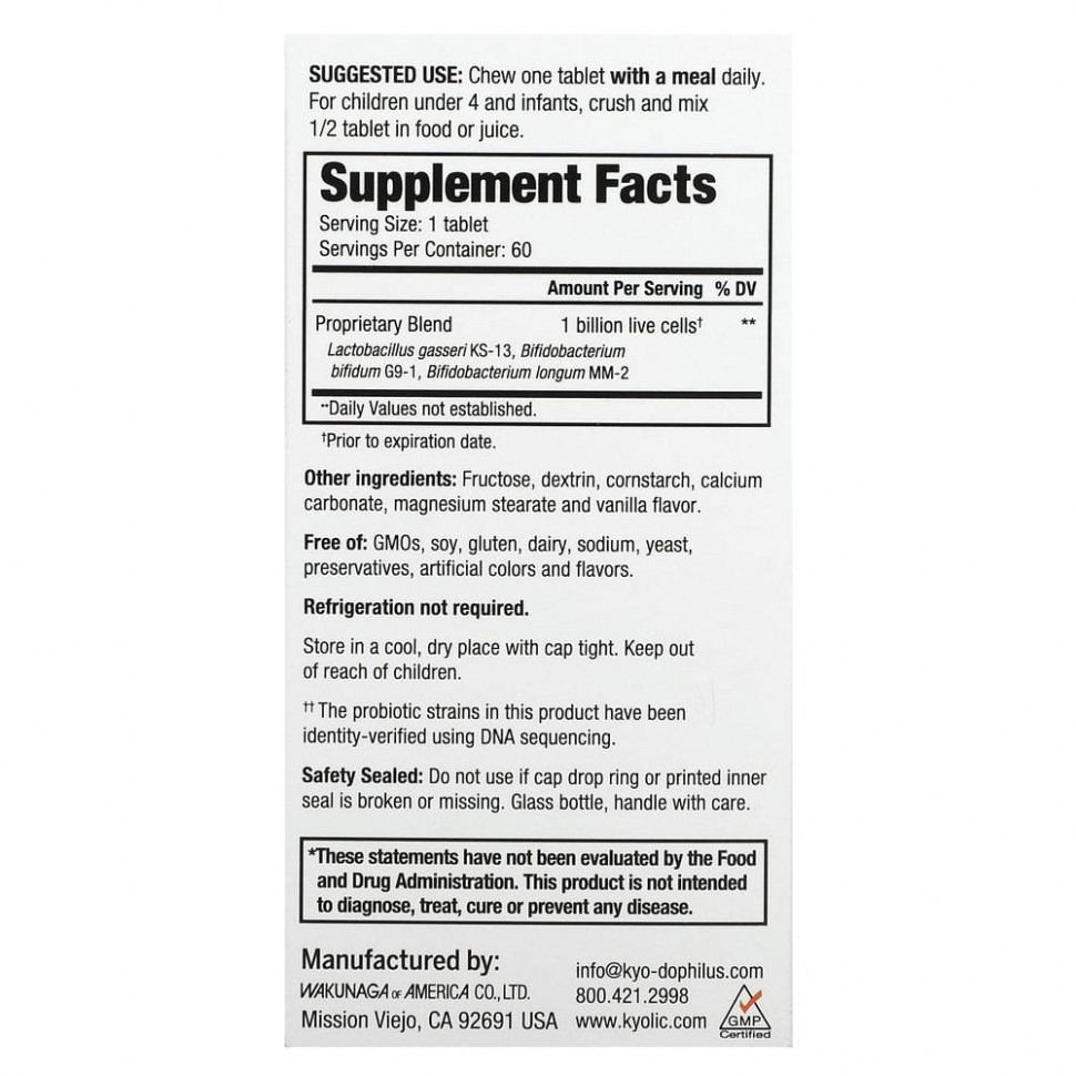 Детский пробиотик Kyo-Dophilus безопасен, легок в употреблении и обладает отличным вкусом. Детский пробиотик содержит комплекс The Friendly Trio, в состав которого входят три биологически совместимых штамма, свойственных человеческому организму. Продукт прошел клинические исследования, которые подтвердили эффективность этих штаммов для поддержания нормального функционирования ЖКТ. Ежедневный прием детского пробиотика способствует восполнению состава полезных бактерий в микрофлоре кишечника, защищая детей от воздействия вредных бактерий. Здоровая пищеварительная система также служит прочным фундаментов для здорового иммунитета. Здоровые дети — залог хорошего самочувствия всей семьи!