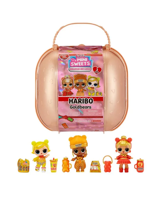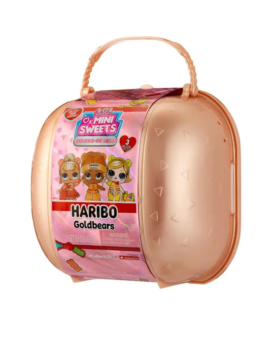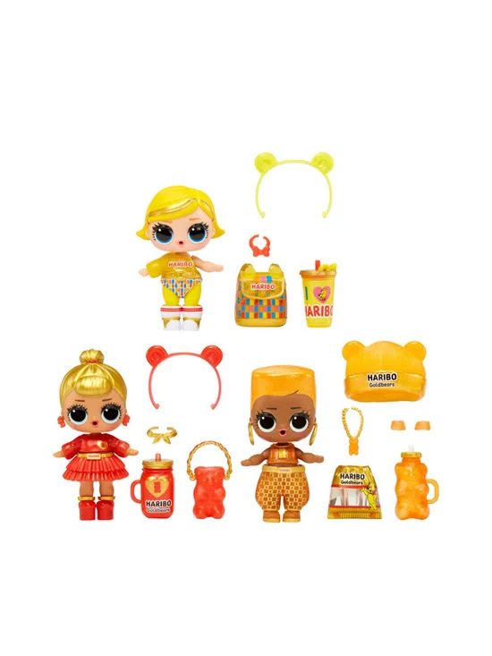 L.O.L Surprise The sweetest tots around are back! Introducing L.O.L. Surprise Loves Mini Sweets x Haribo Deluxe- Haribo Goldbears! L.O.L. Surprise has partnered with iconic brand Haribo to bring you dolls inspired by your favorite gummy bears, Haribo Goldbears! Each Deluxe pack includes 3 limited-edition dolls to match different Goldbears! Feed your dolls for a water surprise! Will they spit, cry or tinkle?