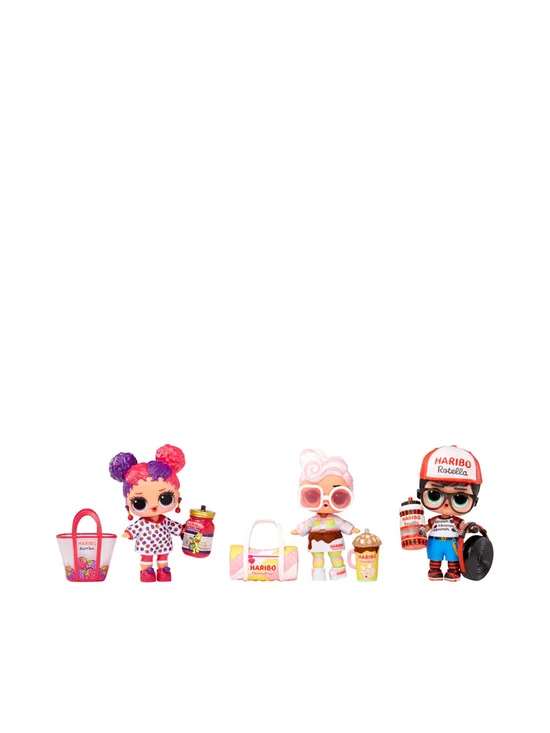 L.O.L Surprise Introducing L.O.L. Surprise! Loves Mini Sweets X Haribo! L.O.L. Surprise! has partnered with the iconic Haribo to bring you dolls inspired by your favorite Haribo sweets. Each doll has a unique style that’s tastier than ever to match each treat. Find nostalgic brands like Haribo Rotella, Sour Streamers, Tropifrutti, Watermelon, Alphabet Letters, Berries, Chamallows, Konfekt, and Pico-Balla! Feed your doll for a water surprise? Will she spit, cry, or tinkle? Each L.O.L. Surprise! Loves Mini Sweets X Haribo doll includes 7 surprises to unbox: LOL Surprise Loves Mini Sweets Haribo Doll, Outfit: Shoes, Bottle, Accessory, Purse. Collect all 9 brand-new L.O.L. Surprise Loves Mini Sweets X Haribo dolls and complete your candy collection! LOL Surprise collectible dolls with stylish hair, fun to dress outfits and many detailed accessory pieces make a perfect toy and playset for kids including 4- to 7-year-olds and up girls and boys for imaginative pretend play! As birthday gifts and gift for any special occasion, dolls provide hours of social play with siblings and friends! From MGA Entertainment, creators of LOL Surprise fashion and collectible dolls, Rainbow High fashion dolls, Na Na Na Surprise dolls, Bratz fashion dolls, MGA’s Dream Ella fashion dolls, MGA’s Glitter Babyz baby dolls, Lalaloopsy, Poopsie Surprise girls dolls, Baby Born Surprise Baby Dolls and Collectibles, Little Tikes kids toys and many other favorite brands.