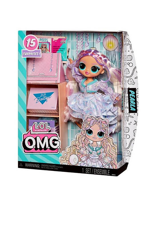 Get ready to dive into a world of fashion and pearls with the all-new LOL Surprise OMG fashion doll Pearla with 15 fabulous surprises to unbox including stylish fashions and accessories! With luscious hair like ocean waves and beautiful mermaid-inspired fashions and accessories, Pearla loves enjoying every moment of the fresh ocean breeze and cruising through the LOL Surprise world with her BFFs!