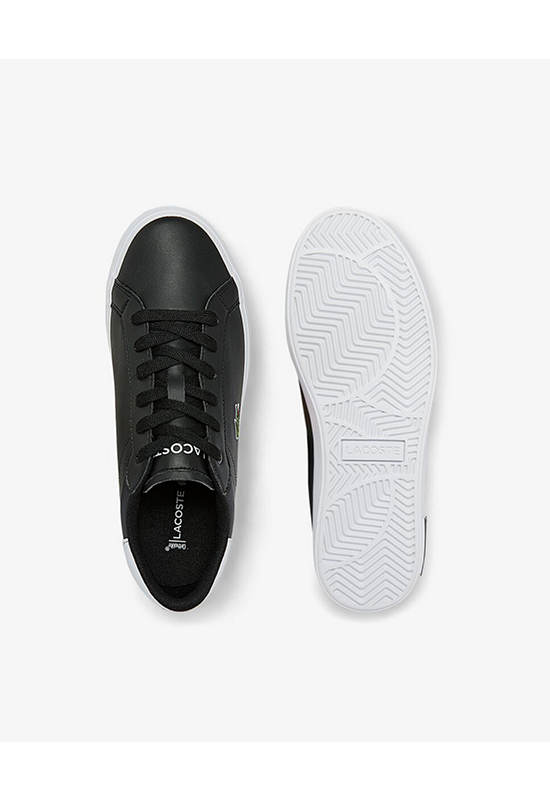 The Powercourt is an emblem of true tennis styling. This lace-up sneaker is crafted from soft synthetic leather and presented in fresh white or sleek black, embellished with elegant stitch-work detailing. Rubber outsoles feature a distinctive herringbone texture, and unique tread patterns inspired by Lacoste’s design heritage. The signature green crocodile pops from the quarter, underlined by a trio of court-informed perforations.