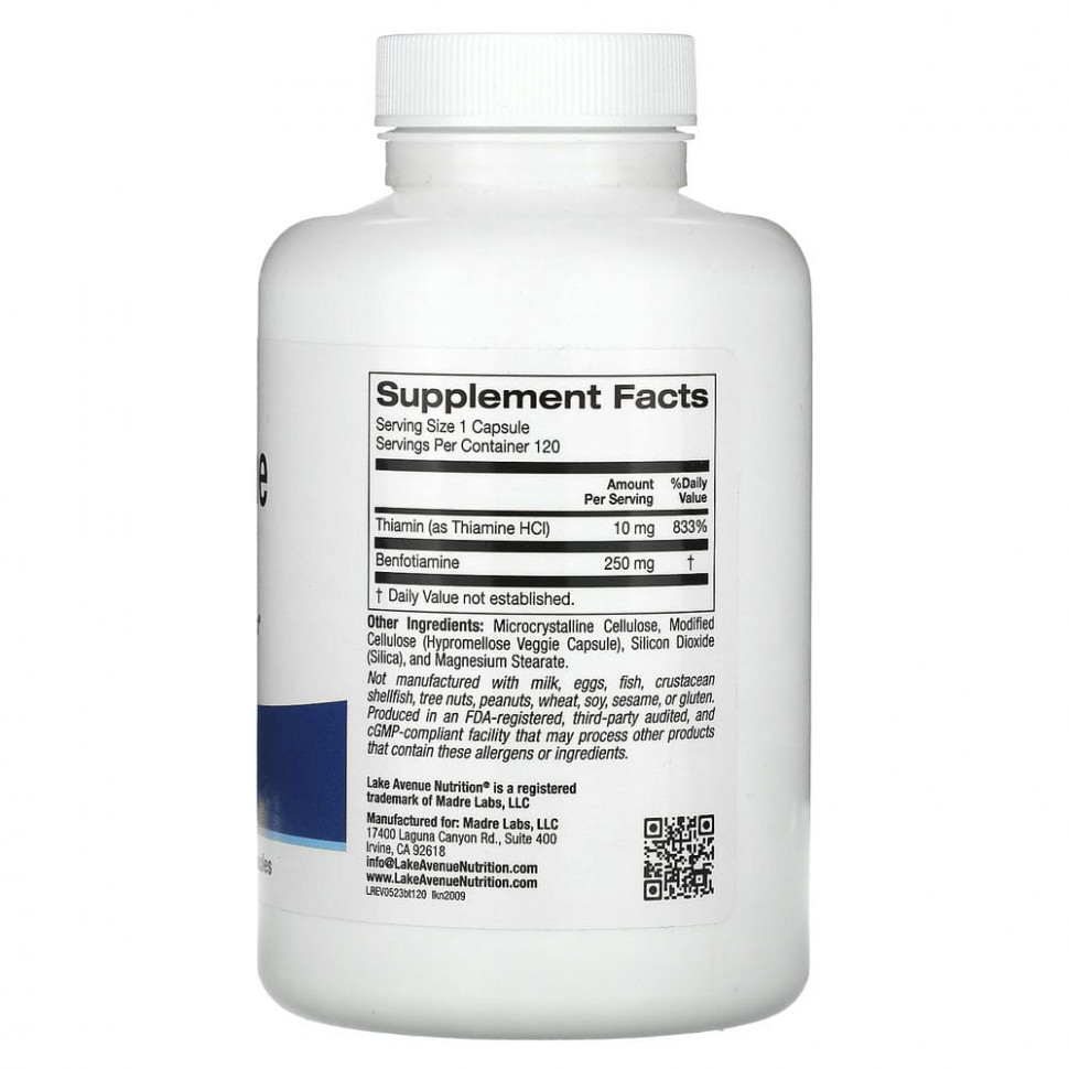 Бенфотиамин и тиамин являются разными формами витамина B1, важного питательного вещества, необходимого для многих процессов в организме. Продукт от Lake Avenue Nutrition содержит жирорастворимый бенфотиамин и водорастворимый тиамин, что повышает доступность витамина B1 и помогает поддерживать здоровый метаболизм глюкозы*.