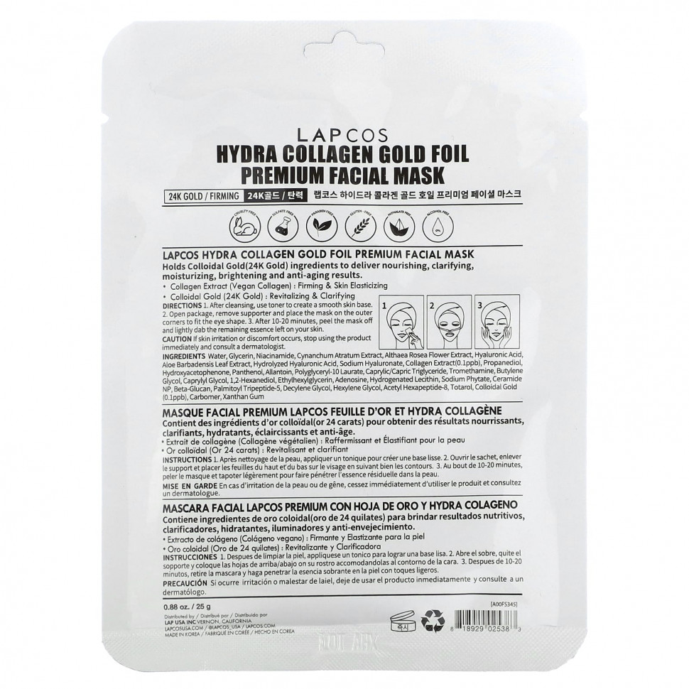 Lapcos Hydra Collagen Gold Foil Premium Facial Mask — маска для лица с коллагеном