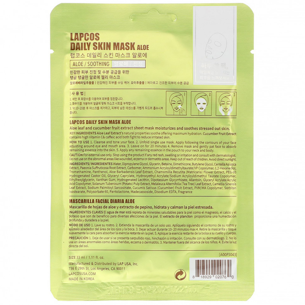 Тканевая маска с экстрактами листьев алоэ и огурца увлажняет и успокаивает уставшую кожу.