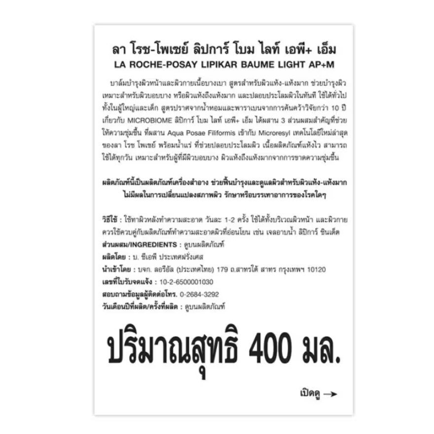 La Roche-Posay Lipikar Baume Light AP+M 400 ml. instantly soothes itching and discomfort on dry, atopic or eczema-prone skin.