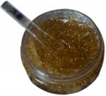 Скраб имеет гелевую текстуру и среднюю по густоте консистенцию.