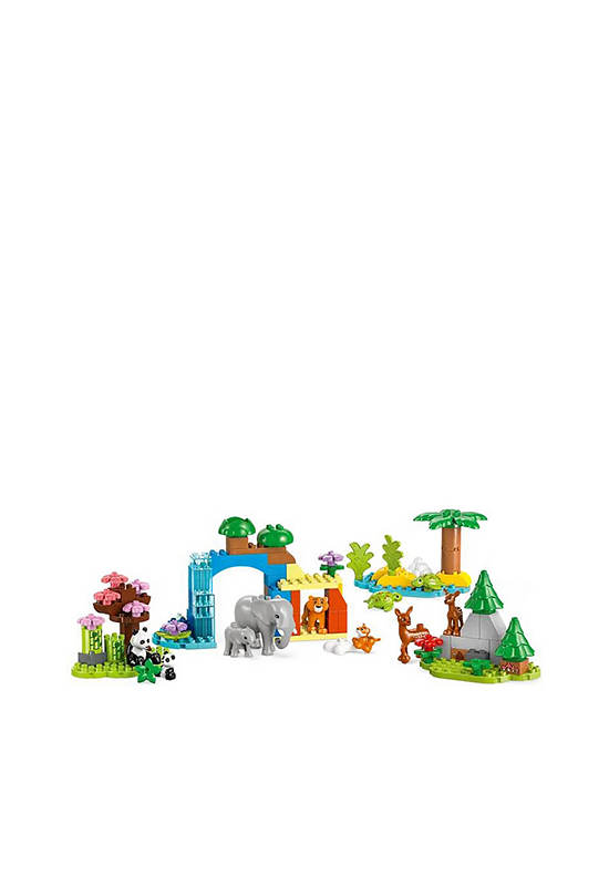 Imagination toy with 10 LEGO® DUPLO® wild animals for creative story-making – Includes tiger, elephant, deer and panda figures, each with a baby, and 2 turtle figures