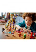 This battle playset includes 8 NINJAGO character minifigures for ninja fans to stage action-packed adventures. Find ninja warriors Lloyd, Cole, Wyldfyre and Kai, and their ally Pixal, each with a ninja weapon accessory, plus villains Drix, Zarkt and a Dragonian Warrior with their own weapons.