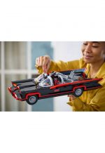 This eye-catching piece of DC Super Heroes™ memorabilia is inspired by the iconic Batmobile from the 1966 TV show. The vehicle features a molded windshield, rotatable wheels, authentic decorations and an opening trunk containing the Bat-Computer. A 1966-style Batman minifigure wearing his distinctive cape and cowl and holding his Batarang™ stands on a platform (the minifigure does not fit inside the car). For added convenience, a digital version of the set’s building instructions can be found on the LEGO Builder app.