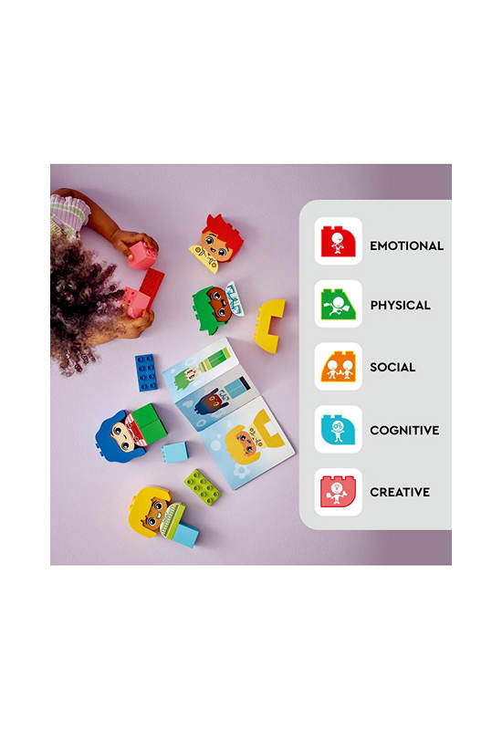 Creative learning toys – By stacking the colored toy bricks, toddlers match or contrast the characters’ wigs then choose how the LEGO® DUPLO® people are feeling with the expression bricks