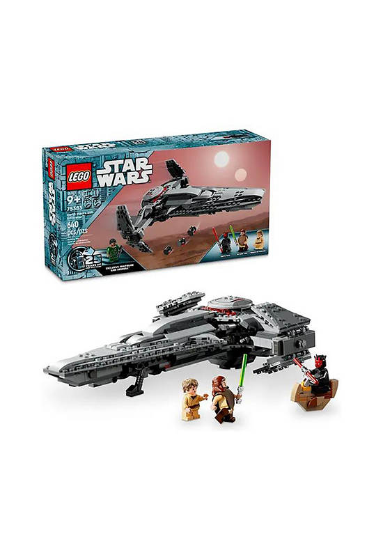 There are 4 LEGO minifigures for creative play: Darth Maul, Anakin Skywalker and Qui-Gon Jinn, plus an exclusive LEGO Star Wars 25th anniversary Saw Gerrera minifigure with a display stand. Darth Maul is equipped with a double-bladed lightsaber, and Qui-Gon Jinn has a lightsaber for duels, and the set also includes Darth Maul’s Bloodfin speeder, which fits inside the starship cockpit.