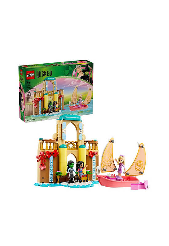 Fans embark on their LEGO® Wicked adventure as Glinda arrives at Shiz University on a sailboat toy for kids. The boat toy has a hinged sail and comes in a pink shade, just like the one from the movie. Inspired by the Wicked movie, this best-friend gift lets kids play out friendship stories between the Glinda, Elphaba and Nessarose mini-doll figures.