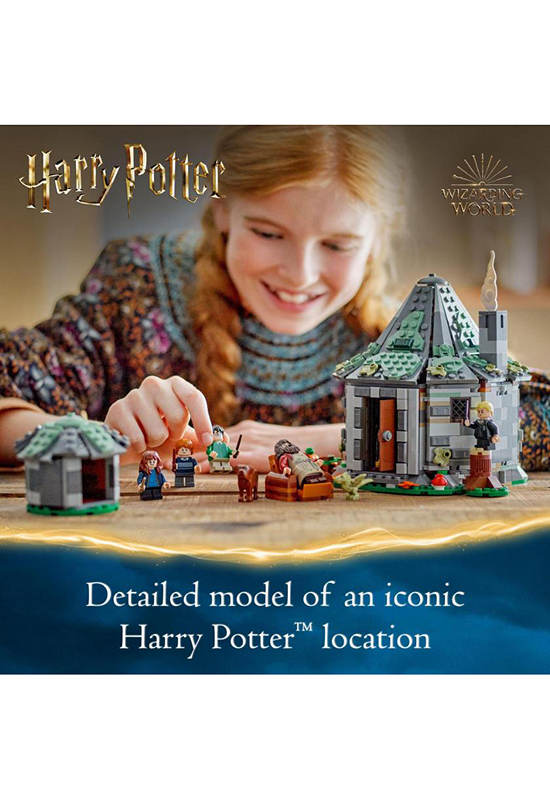 This buildable house kit of an iconic Harry Potter location features 5 LEGO minifigures – Harry Potter, Hermione Granger™, Ron Weasley™, Draco Malfoy™ and Rubeus Hagrid, plus Norbert and Fang toy figures.