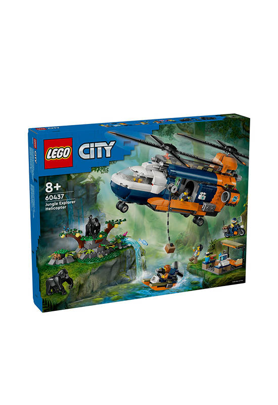 Treat your little explorer to the LEGO® City Jungle Explorer Helicopter at Base Camp (60437) adventure playset for ages 8 and up, featuring a realistic helicopter toy with synchronized twin rotors, 2 cargo bays and a working winch. The set also includes a motorcycle, swamp boat and jungle base camp, plus 5 adventurer minifigures and 3 gorilla toy figures, including a baby gorilla, for imaginative play and storytelling.