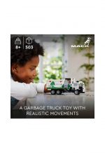 After building the model, kids can enjoy creative play as they explore what the truck can do. The doors open and kids can use the gear element on top of the cab to steer the truck intoposition. Just like the real vehicle, this model has a side loader to grab, lift and tip the garbage cans. Kids can then role-play driving the trash away and unloading it. The set includes trash cans and garbage elements to encourage imaginative play.
