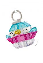 Kids begin by building heart, ghost, mermaid, star, and unicorn toys. As their building confidence grows, they move onto a spaceship, cloud, shooting star, bird, narwhal, ice cream, and flower. Next, they can scale up the creative fun with a large castle and dragon toy. Translucent bricks, eye and mouth pieces, and hanger-bricks for display add see-through sparkle and extra creative fun to kids’ creations.