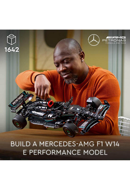 Racing drivers call it the zone. A state of super-concentration needed to perform at breathtaking speed. Now it’s time for you to get in the zone as you channel that same focus to build a LEGO® Technic™ model of the Mercedes-AMG F1 W14 E Performance car (42171) from the 2023 season. Enjoy a rewarding build as you assemble the details of this 1:8 scale model for adults. With authentic livery details this model looks amazing from every angle, so celebrate your building achievement by placing it on display.