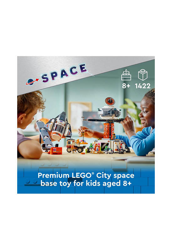 Premium LEGO® City Space Base and Rocket Launchpad space exploration set for imaginative play, with 6 minifigures and 1 robot and 2 alien figures.