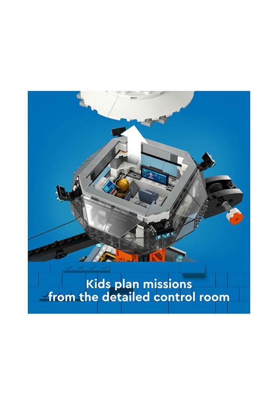 Fun for fans of spaceships and imaginative play – Kids can operate the 360° tower crane and open the base to access an equipment carousel, detailed science lab and recreation area