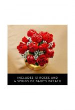 A joy to build, this LEGO bouquet depicts a dozen red roses, including 4 in full bloom, 4 blooming and 4 in bud, with long green stems for vase display, plus 4 sprigs of baby’s breath with small white flowers. Easy to assemble, the bouquet makes an elegant display for any space and is combinable with other sets from the LEGO Botanical Collection.