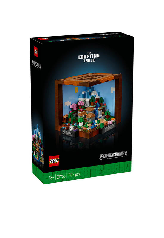 Celebrate Minecraft creativity with this LEGO building set for adults designed for the 15th anniversary of the popular video game. Included within LEGO Minecraft The Crafting Table (21265) are familiar biomes, favorite mobs and hidden Easter eggs for adult fans of the game to discover and display. This set recreates the game’s iconic crafting table. Inside are 5 mini build modules featuring 12 Minecraft biomes, including the Taiga with a dripstone cave, Plains with a village, Ice Spikes with an igloo, Cherry Grove with an abandoned mineshaft, and the Deep Dark with a lush cave. 8 microfigures are also included: Steve, Alex, a skeleton, witch, Creeper, villager, cow and pig. The mini builds and microfigures detach from the main model to enable a variety of display possibilities.