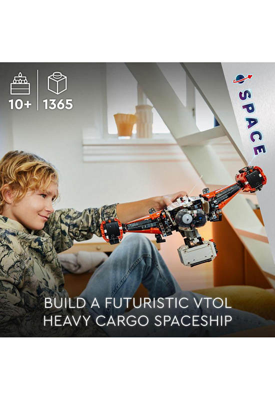 Space enthusiasts can enjoy a build to remember with the LEGO® Technic™ VTOL Heavy Cargo Spaceship LT81 (42181) for kids aged 10+ who love space plane toys. This futuristic spaceship vehicle toy model has lots to ignite curiosity as kids play out exciting cargo transport missions on distant planets.