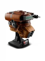 Toys block from the brand LEGO. Suitable for player age 18+ Pay homage to a legendary character with this LEGO® Star Wars™ Princess Leia (Boushh) Helmet (75351) build-and-display model for adults. Channel your creative Force to recreate the bounty hunter helmet worn by Princess Leia as a disguise to enter Jabba the Hutt’s palace in Star Wars: Return of the Jedi. A buildable stand with a nameplate completes an admirable centerpiece.
