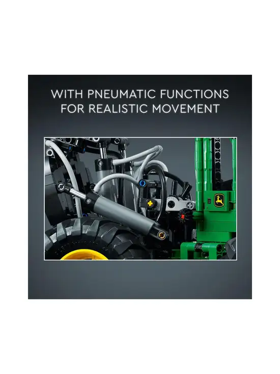 Toy blocks from the brand LEGO. suitable for player age 11+ This LEGO® Technic» John Deere 948L-II Skidder set introduces kids age 11+ to the world of heavy-duty engineering with a buildable model to explore. Give John Deere fans an experience to remember as they recreate all the details of one of the iconic manufacturer’s biggest machines. Kids aged 11+ with a passion for engineering and agriculture will love exploring all the features packed into this LEGO® Technic John Deere 948L-II Skidder building kit. Authentic functions include steering, 4-wheel drive and a working engine. There’s also a range of pneumatic functions – just like on the real skidder – that operate the claw with its 3 different actions, the blade and the rotating seat.