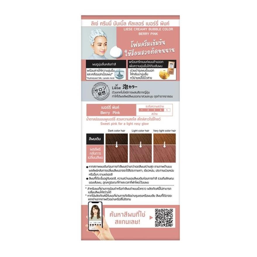 Liese Creamy Bubble Color. No.1 Foam Hair coloring. Japan Innovation. Thicker foam and foam become more creamier and sticks to hair 4X better by massaging for a great color turnout and lasting-long. Contain 2 core ingrediences such Royal Jelly and Hydrolyzed Silk for protect damage hair after coloring.