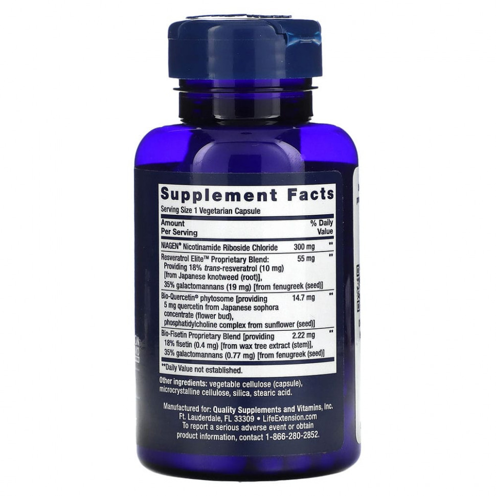 В формуле NAD+ Cell Regenerator™ с ресвератролом объединены никотинамид рибозид NIAGEN® и ресвератрол с кверцетином и физетином, сочетание которых легло в основу инновационной пищевой добавки для долголетия и выработки клеточной энергии на уровне молодого организма. Optimized NAD+ Cell Regenerator™ с ресвератролом поможет поддержать нормальный клеточный метаболизм и моделировать экспрессию генов, от которых зависят определенные аспекты старения.
