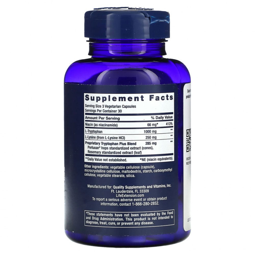 В формулу также входят лизин, ниацинамид и экстракты хмеля и розмарина, которые способствуют полезному воздействию триптофана на организм.
