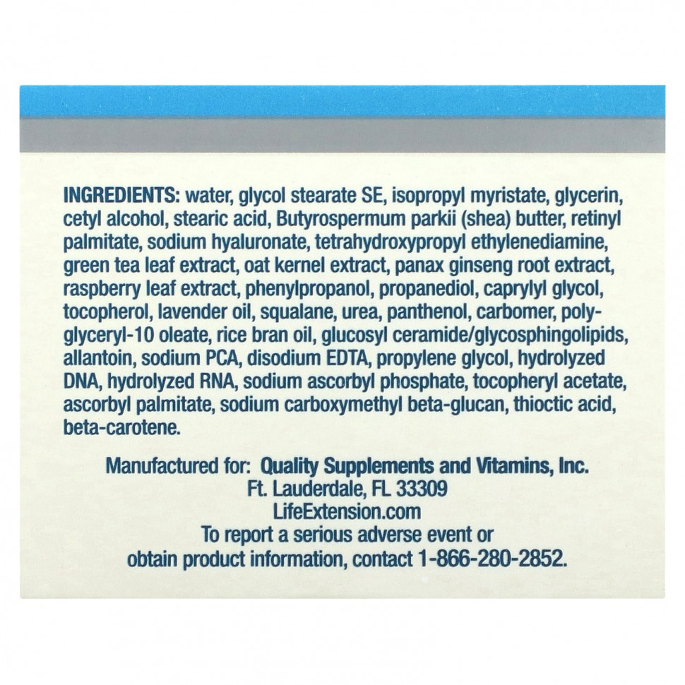 Вода, гликоль стеарат SE, изопропил миристат, глицерин, цетиловый спирт, стеариновая кислота, масло ши (Butyrospermum parkii), ретинилпальмитат, гиалуронат натрия, тетрагидроксипропил этилендиамин, экстракт листьев зеленого чая, экстракт ядер овса, экстракт корня женьшеня (Panax ginseng), экстракт листьев малины, фенилпропанол, пропандиол, каприлилгликоль, токоферол, лавандовое масло, сквалан, мочевина, пантенол, карбомер, полиглицерил-10-олеат, масло из рисовых отрубей, глюкозил керамид / гликосфинголипиды, аллантоин, натрия пирролидонкарбонат, двунатриевая ЭДТК, пропиленгликоля, гидролизованная ДНК, гидролизованная РНК, аскорбил фосфат натрия, токоферилацетат, аскорбил пальмитат, натрия карбоксиметил бета-глюкан, тиоктическая кислота, бета-каротин.