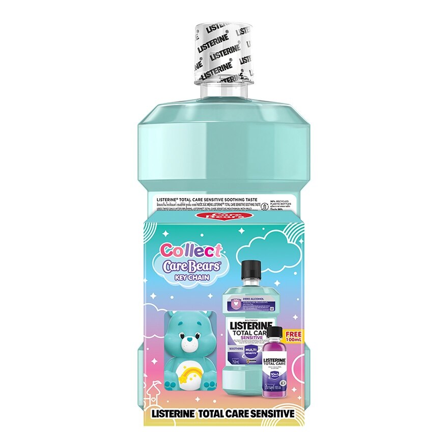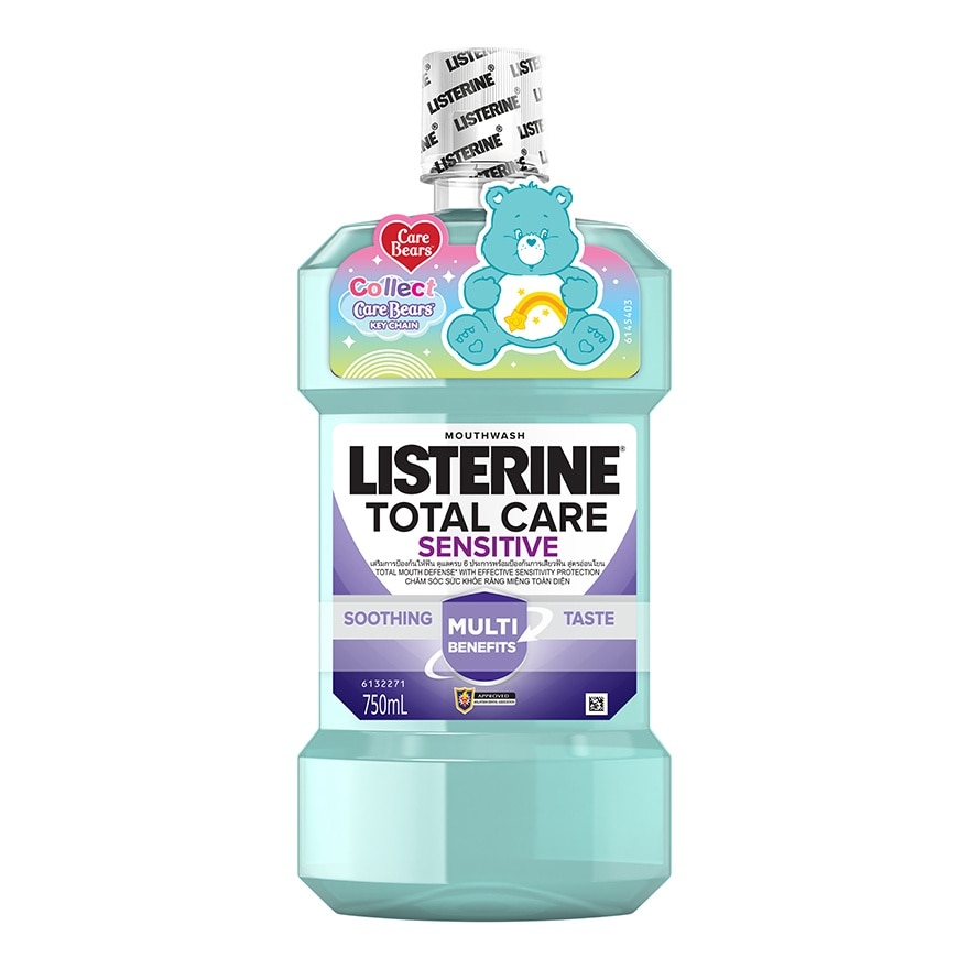 Listerine Mouthwash Total Care Sensitive — Unique proprietary formula specifically designed to tackle sensitivity -fast and lasting sensitivity — kills 99.9% of germ -Primarily serves to numb the nerve and desensitizes the user against sensitivity pain when it comes into contact with stimuli. Listerine Total Care Sensitive All day protection — against sensitivities Rinse with 20 ml. nondiluted Listerine each time, twice a day. Expel after rinse for 30 seconds. Do not swallow the rinse. all day protection — against sensitivities.