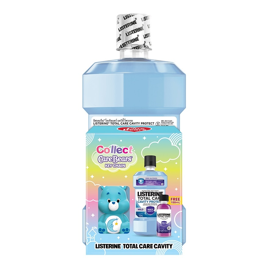 Listerine Total Care Cavity Protect Fluoride Mouthwash, mild taste — 0% alcohol with fluoride for 7X cavity protection vs brushing alone together with 4 Essential Oils (Menthol, Thymol, Methyl Salicylate, Eucalyptol) helps reduce 99.9% plaque & bad breath causing germs. — germs that cause bad breath, plaque and gum problems. — compared to toothpaste alone in lab study. — How to use: Rinse with 20 Ml. nondiluted Listerine each time, twice a day. Expel after rinse for 30 seconds. Do not swallow the rinse.