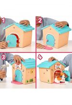 Attach the door to your puppy’s home, slide in their welcome mat and decorate your home by using the cute sticker sheet to personalise your puppy’s home! It’s time to add the final touch by picking a name for your puppy and attaching their name plate to the front of the house with the hammer and nail!