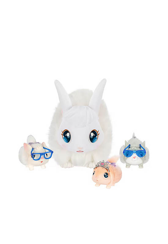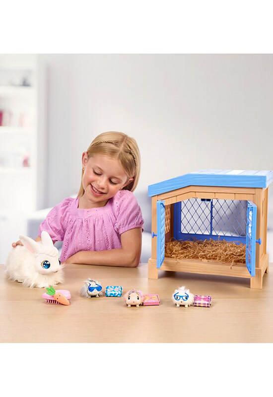 LITTLE LIVE PETS Mama Surprise — Bunny! Mama Surprise takes caring for your pet to a whole new level — your mama bunny magically has 3 babies! This soft, interactive mama bunny comes with a deluxe interactive hutch. Care for mama by feeding her with her carrot and brushing her beautiful hair with her hair brush. With enough love and attention, mama’s heart will start to glow, indicating that a baby is on the way!