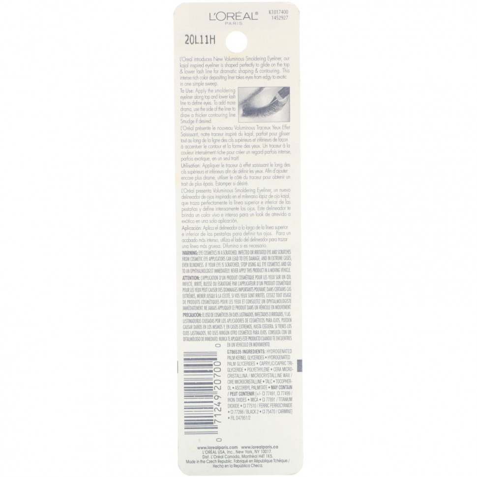 L’Oreal представляет новый карандаш для глаз Voluminous Smoldering. Наш карандаш похож на кайал и идеален для того, чтобы создавать выразительный контур по линии роста ресниц на верхнем и нижнем веке. С помощью этого карандаша с насыщенным цветом можно одним движением сделать глаза выразительными и экзотическими.