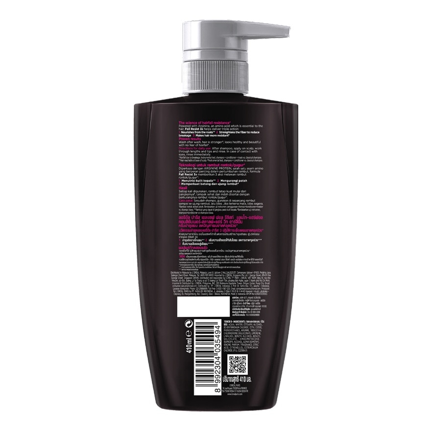 L'Oreal Paris Elseve Conditioner Fall ResistX3 Anti-Hair Fall Powered with Arginine, an amino-acid which is essential to the hair fall Resist 3X helps deliver triple action: 1.Nourishes from the roots 2.Strenghtens the fiber to reduce breakage 3.Makes hair more resistant Proven results wash after wash,hair is stronger,looks healthy and beautiful with no fear of hairfall. After shampoo, apply on scalp, work through lengths and tips and rinse. In case of contact with eyes,rinse immediately. The packaging of this product is made with 56% recycled plastic.