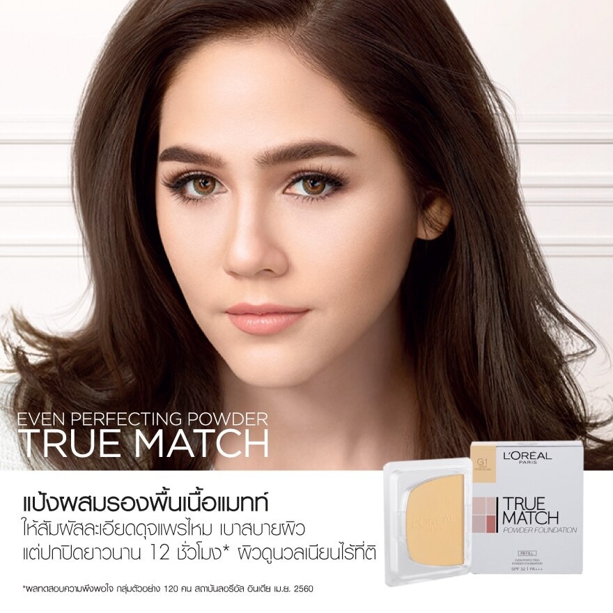 The true matching powder foundation For naturally even skin perfection , The newest formula of two-way cake powder from L’Oreal Paris. Instantly even skin tone & perfect skin complexion With true matching silky-matte finish. AIRY BREATHABLE THIN FILLER: 12h long lasting coverage, 8h shine free finish, Poreless semi-matte skin all day long. INNOVATIVEDOUBLE FACE SPONGE FLOCKED SIDE FOR T-ZONE PORE PERFECTION With micro-furs that easily capture optical particles to effectively blur out pores for delicately smooth t-zone with 100% poreless perfection SPONGE SIDE FOR CHEEK BONES RADIANCE The ultra bouncy and smooth sponge enhances adhesive affinity on each tap for 0 cakyness, long-lasting coverage with soft-focus radiance. Available in 6 shades that naturally match Asean skin tones.