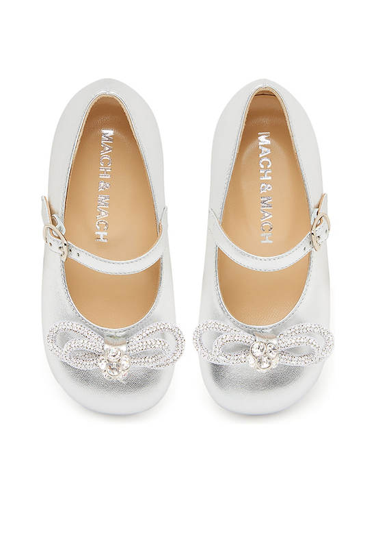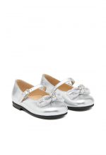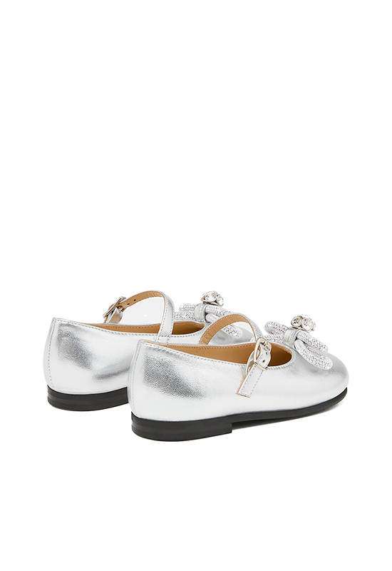 Girl Toddler Ballerina Shoes Double Bow Mini Silver Leather