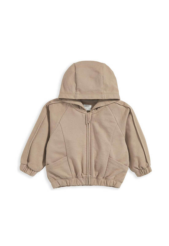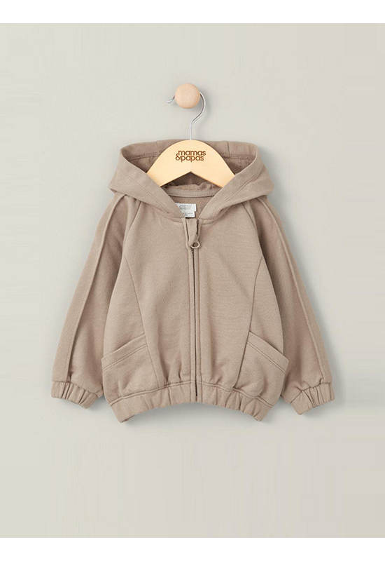 Boys’ long-sleeved loopback sweat hoodie, in Taupe from MAMAS&PAPAS. With zip fastening at front, for easy dressing and undressing. Pocket detail. In ultrasoft stretchy jersey fabric. Matches perfectly with our taupe joggers.