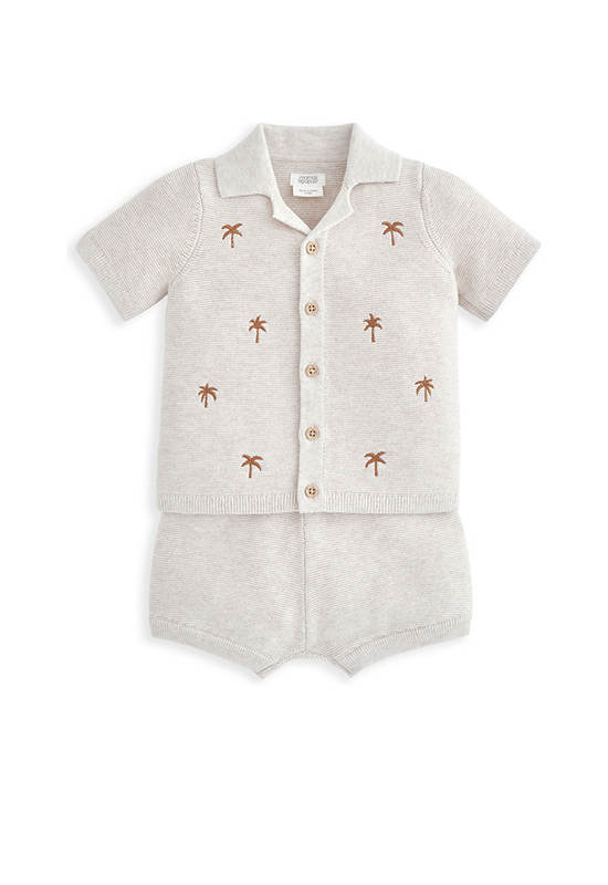 Bring cute tropical vibes to your little one’s wardrobe with this knit embroidered resort set.