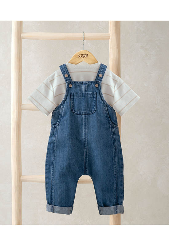 2 Piece denim dungaree and t-shirt set, perfect for everyday adventures.