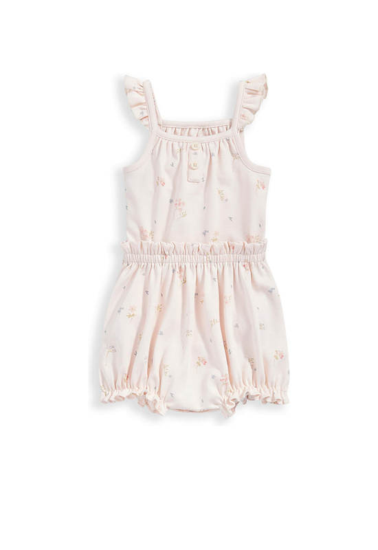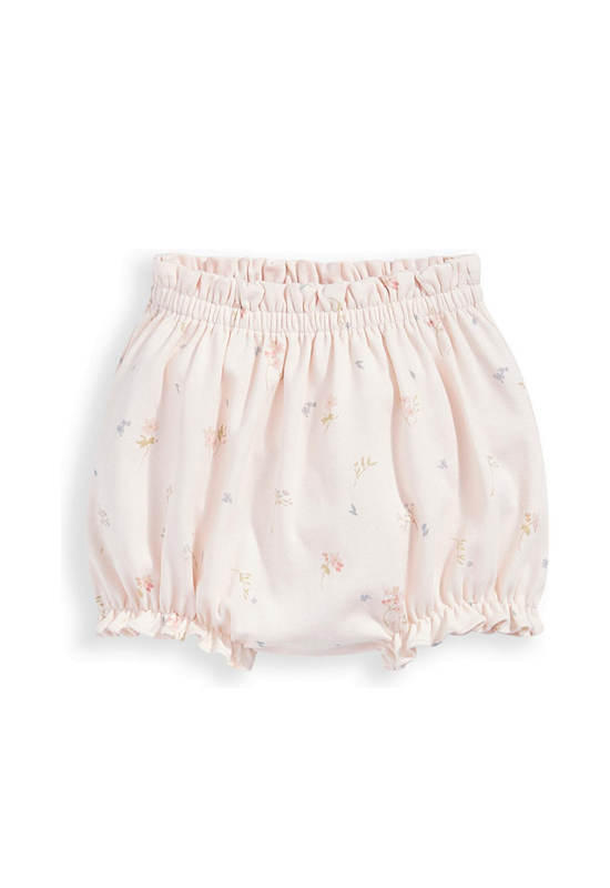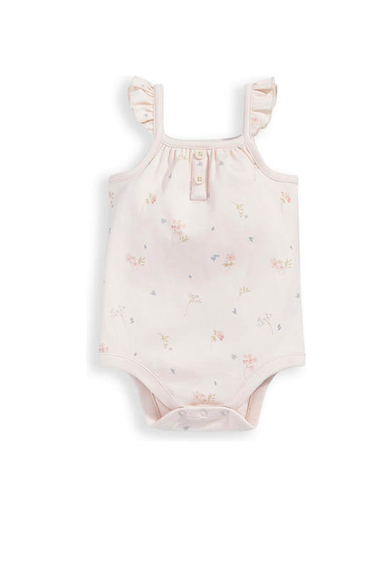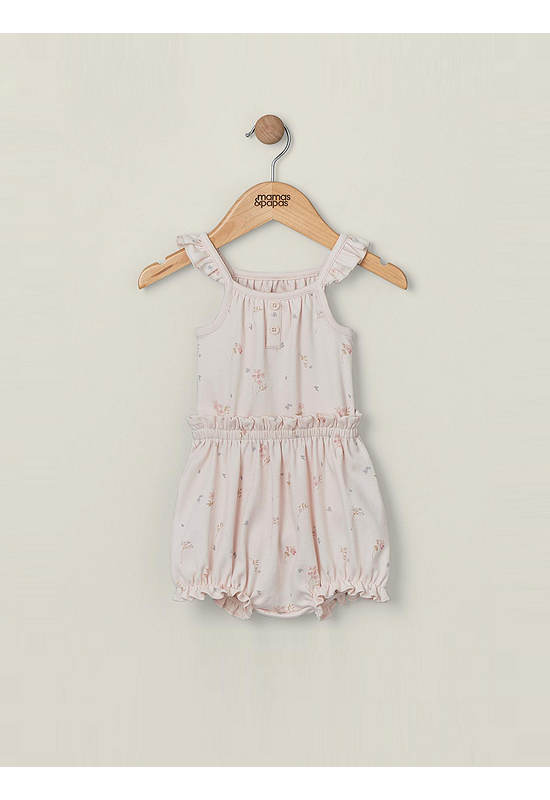 2-pack sleeveless bodysuit and bloomer set from MAMAS&PAPAS, in wildflower print. With frills on straps and elasticated frill on hem. Popper fastening on bodysuit at crotch. Made from soft 100% cotton.