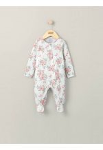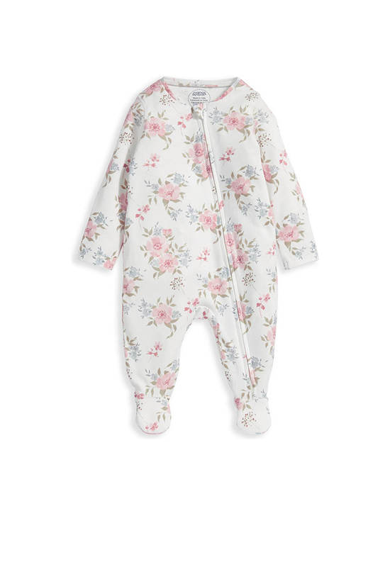 Long-sleeved all in one girls’ sleepsuit from MAMAS&PAPAS, in oversized flroal watercolour-style print. With zip fastening for ease. Integrated feet and scratch mitts for added warmth and protection. Made from ultrasoft cotton.
