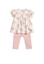 Girls’ short-sleeved T-shirt from MAMAS & PAPAS in stunning oversized floral watercolour-effect print . With unique gathered sleeve detail. A popper fastening at the back makes dressing and undressing easier. Supersoft fabric